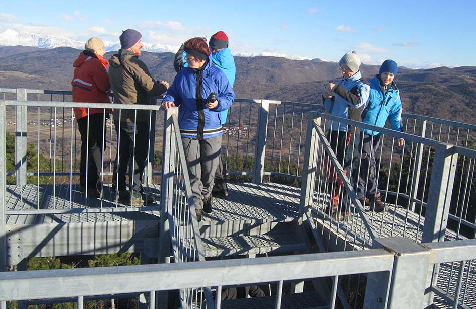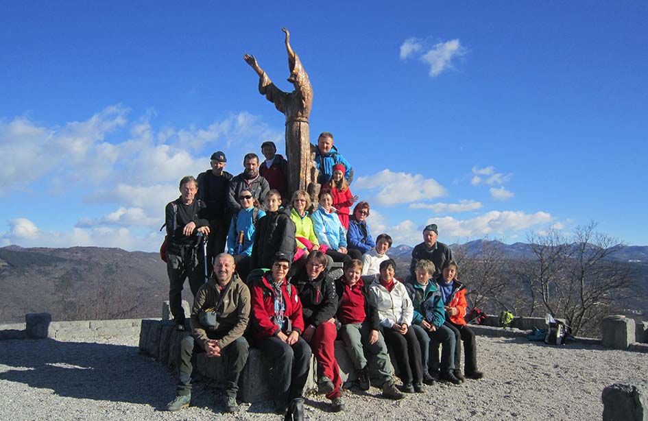 Zaradi zaprte ceste med Prevalo in Ravnico smo morali delno spremeniti prvotni načrt dostopa na izhodišče, še posebej, ker je namesto 30-sedežnega avtobusa pripeljal veliki 50-sedežni. A s sposobnim šoferjem Janezom smo preko Krombertka srečno prispeli na Vratca ter se po zanimivi, v prvem delu v živo skalo vklesani stezi, povzpeli na 646 m visoki Škabrijel. Saj ta vzpetina sama po sebi ne bi bila ne vem kako zanimiva, a glede na žalostno zgodovino izpred 100 let, zasluži vso pozornost in spoštovanje. V prelepem vremenu je razgledni stolp nudil izjemen razgled od Alp pa do morja. Pri sestopanju proti Prevali smo stopili še do spomenika na Malem vrhu. Nadaljevanje proti Sveti gori je bilo nekaj posebnega. Odločili smo se za pot po jarkih in kavernah. Ne čisto lahka pot nas je skozi hrib pripeljala pod hrib svetega Frančiška. Le še nekaj minut hoje nas je ločilo od svetogorske bazilike, kjer smo si ogledali še ogromne jaslice. Za piko na i smo si seveda privoščili še dobrote iz restavracije in po bližnjici sestopili na Prevalo, kjer nas je čakal avtobus.