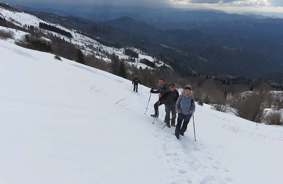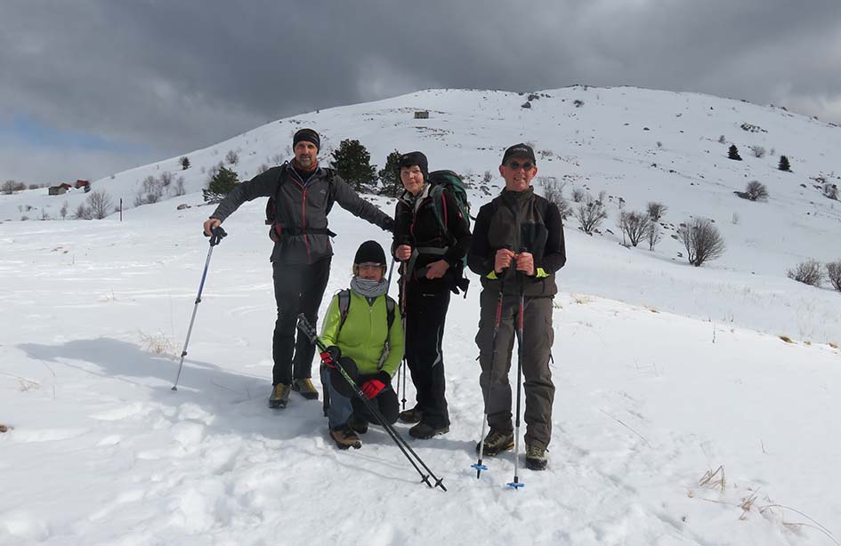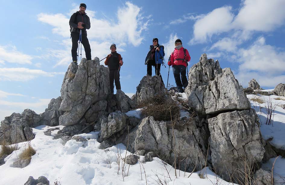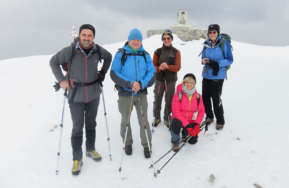 Ker je bilo sprva določenega datuma 5. marec slabo vreme, smo turo prestavili na 13. marec. Zbralo se nas je 5 udeležencev, zato smo šli z osebnim avtom in zaradi logistike turo od prvotno mišljene kar precej spremenili. Zapeljali smo se čez Livek v Italijo in naprej do vasice Matajur (Montemaggiore). Parkirali smo ob cesti tik nad vasjo in nato na prvem ovinku skrenili s ceste proti Zadolini in naprej proti Marsinski planini in dalje po grebenu na vrh Matajurja. Vreme je bilo lepo, malo vetrovno, sneg že uležan, da se je dalo lepo hoditi. Le na vrhu je močno pihalo, tako da smo se hitro zatekli v kapelico na kratek oddih. Nazaj grede smo se še ustavili v koči Na Matajure in se skoraj po isti poti vrnili nazaj na izhodišče.