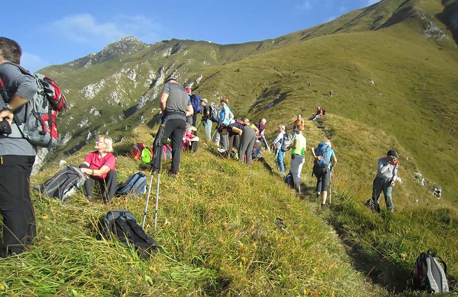Aleš žal ni mogel urediti zamenjave v službi, pa sva se dogovorila, da prevzamem organizacijo in vodenje. S kombijem smo se peljali v Breginj ter se pridružili pohodnikom tradicionalnega že 22. pohoda na Breški Jalovec. Strma je pot na Mali Muzec, pri bivaku pod Velikim Muzcem oz. Gabrovcem, 1630 m smo imeli daljši postanek, nato pa nadaljevali po grebenu čez nešteto vzpetin do Breškega Jalovca, ki je že na italijanski strani. Najvišje gore – Kanin, Zahodni Julijci, Karnijske Alpe in Dolomiti so se skrivale v meglicah, tako smo lahko uživali le v pogledih na južno stran in seveda na neskončno dolg prehojen greben vse tja do Stola. Sestopili smo v vas Brezje (Montemagiore), kjer nas je že čakal naš kombi, privoščili smo si še odličen pohodniški pasulj v Breginju, pa še kratek postanek v Kobaridu za kavo in sladoled in zaključili smo še en lep dan.