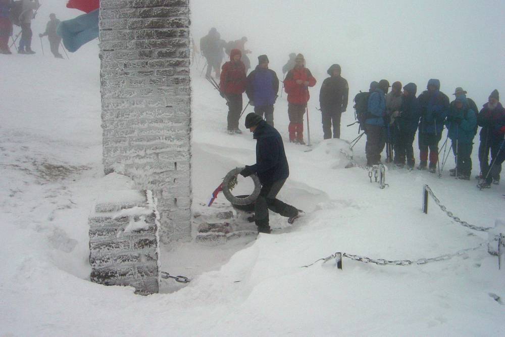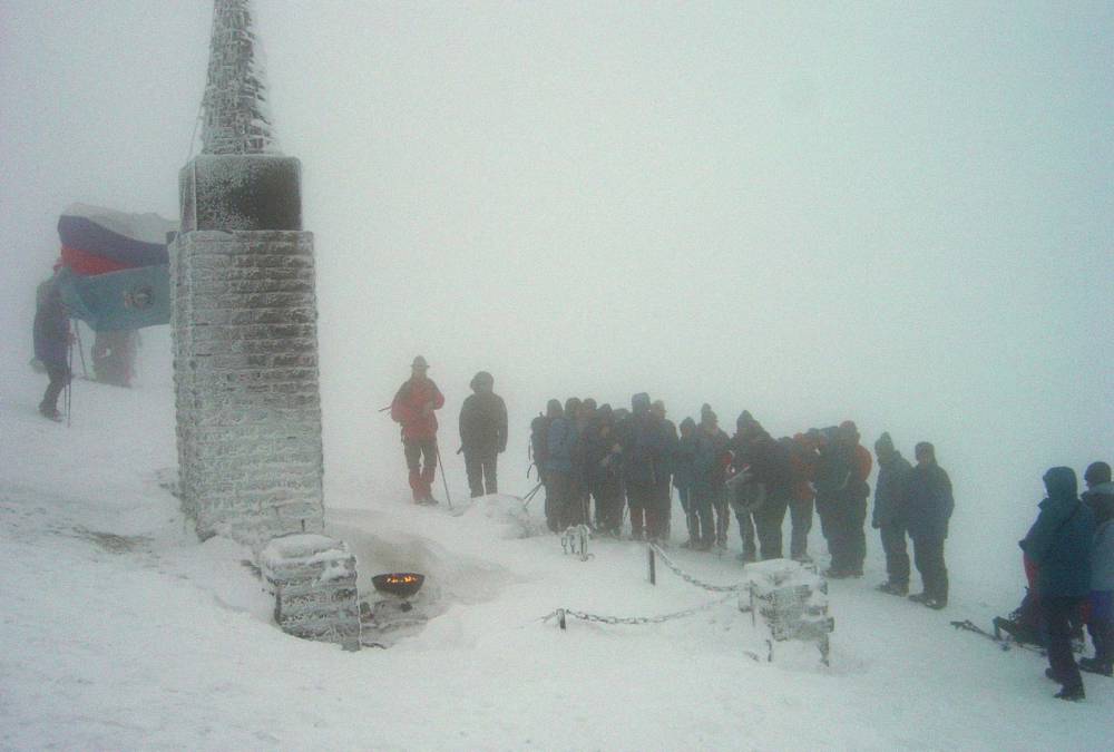 vetru na vrhu / Commemoration on top of Porezen, very strong wind